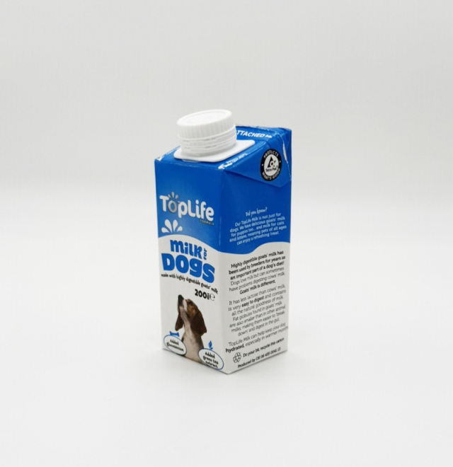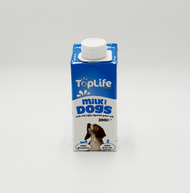 牛乳より乳糖が少なく消化に大変よい、ヤギミルク80%を原料とした、成犬用の美味しいミルクです。