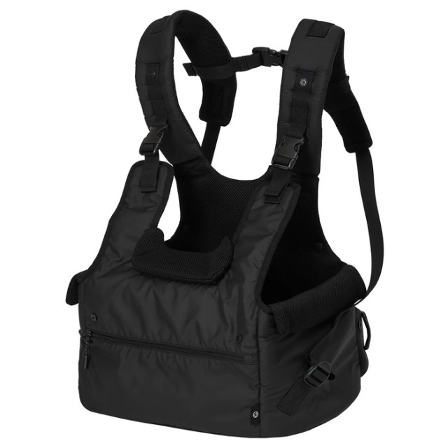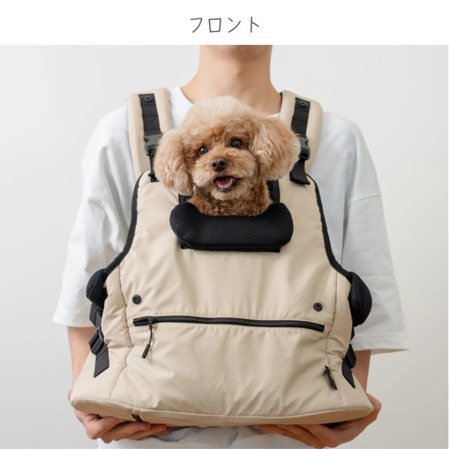 ペットの体重を分散し、肩や腰への負担を軽減する前抱き専用キャリーバッグ。