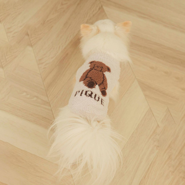 ふんわりと軽く柔らかなベビモコ素材を使用した、ほんわかした色合いのベア柄プルオーバーです。色は毛色に合わせやすいクリームとブラウンの2色展開。