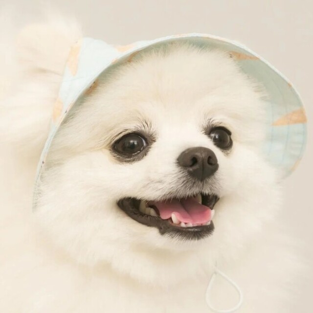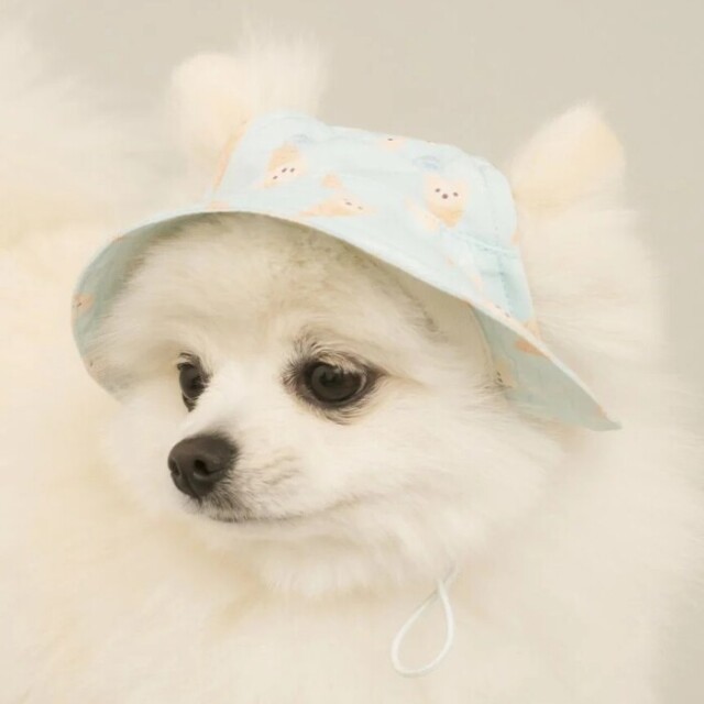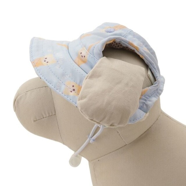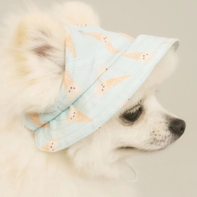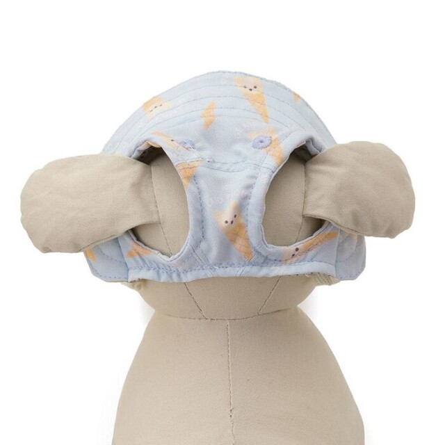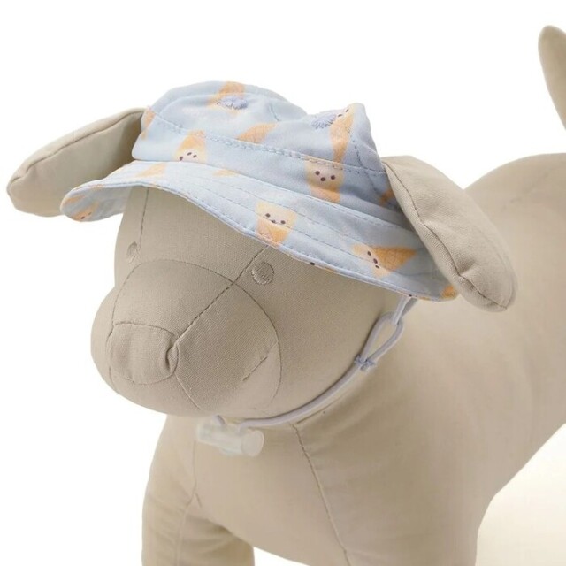初夏から真夏まで、日差しが気になる季節のお散歩にうれしい、わんちゃん用ハットです。涼しげな水色をベースに、ベアの形をしたアイス柄をプリント。