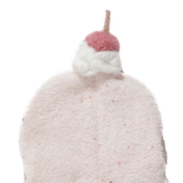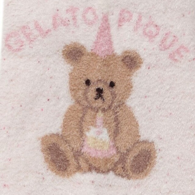 背面にはカップケーキでお誕生日を祝うベアとブランドロゴをジャガードでデザインし、360度どこから写真を撮っても可愛く見えるように仕上げました。