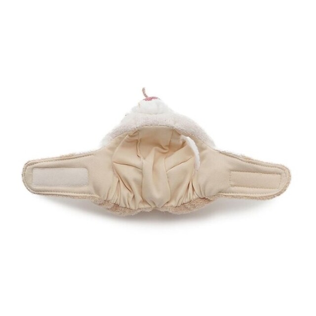 耳を出せる仕様で、あごで留めて手軽に着用いただけます。