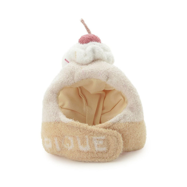 頭の上にはクリームとチェリーのモチーフ。