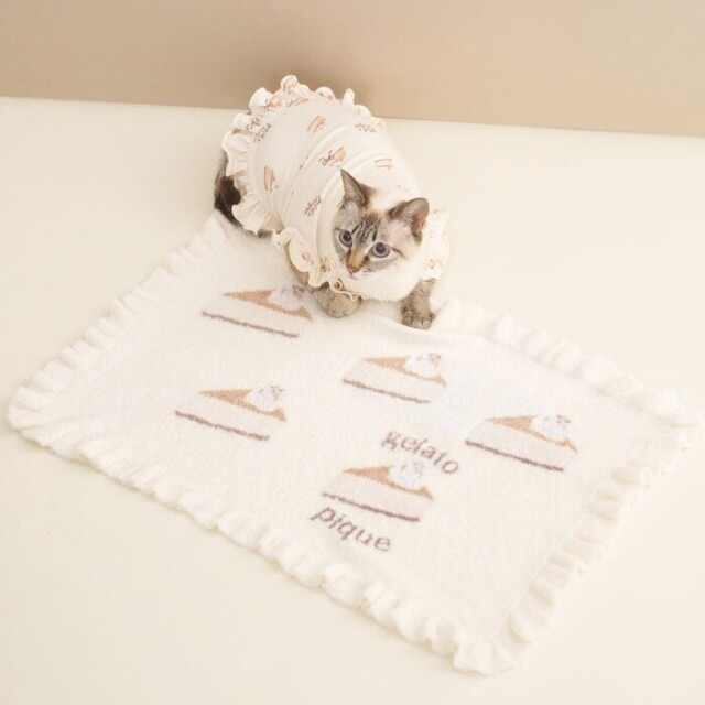 チーズケーキ、チョコレートケーキ、イチゴのショートケーキ。みんな大好きな定番ケーキをモチーフにした、薄手の’スムーズィー’素材のペット用ブランケットです。