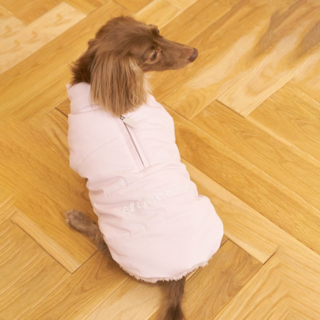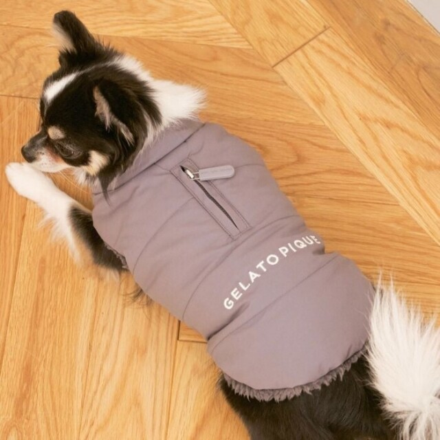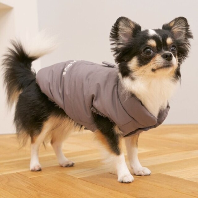 ふわっと軽い素材感で、お散歩時に肌寒くなってきた時など、ハーネスを着た上からさっと着せることができます。