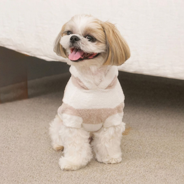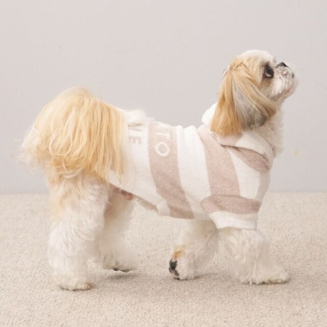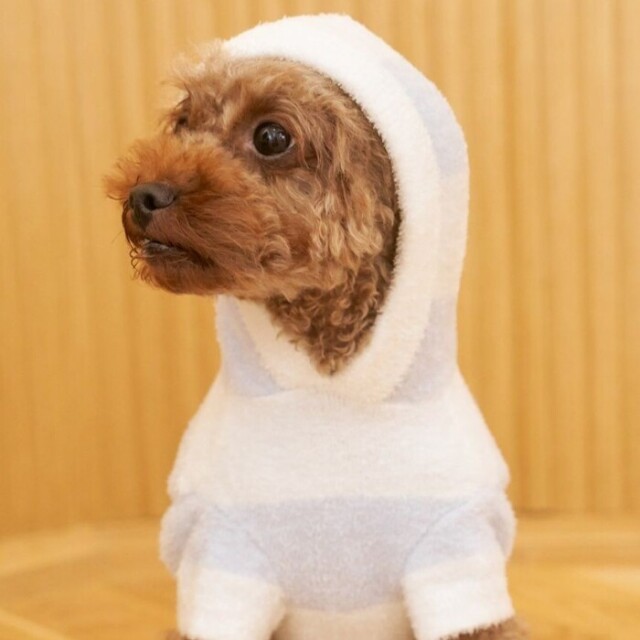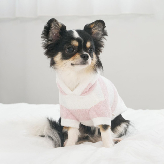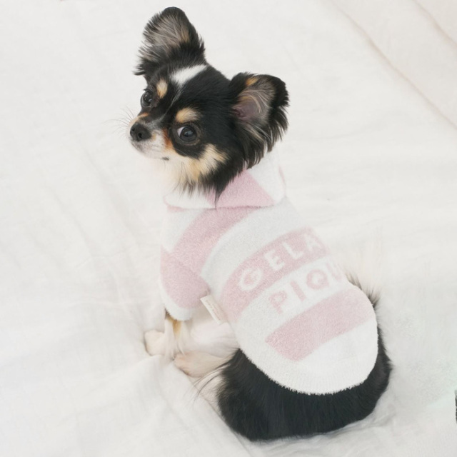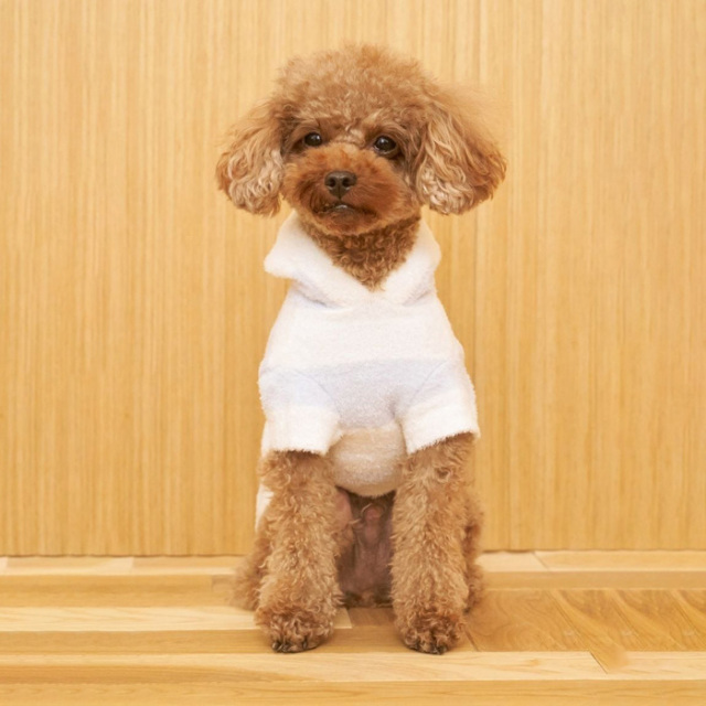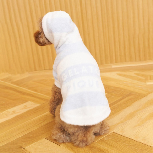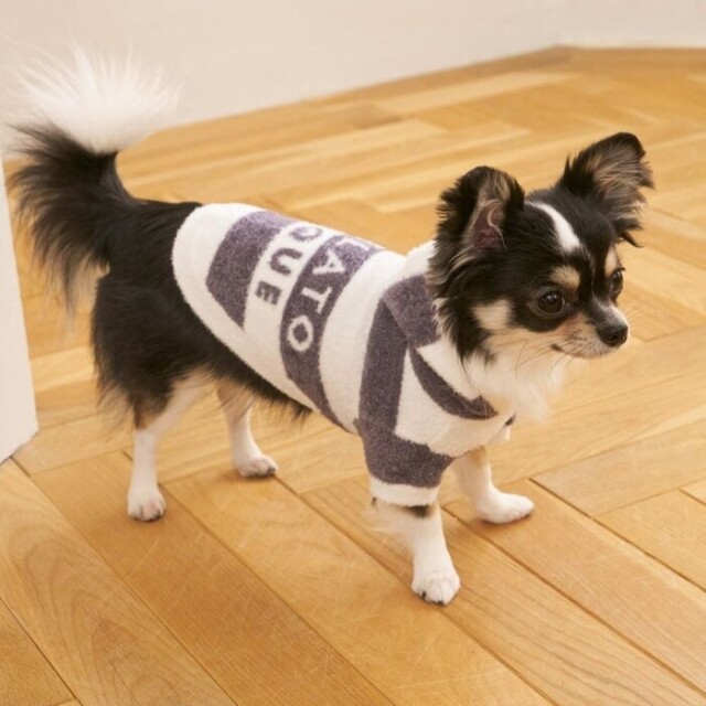 なめらかな’スムーズィー’素材を使用した、定番2色ボーダーのDOG用フーディーがリニューアルしました。背中のロゴがジャガード仕様になり、よりアクセントの効いたデザインになりました。