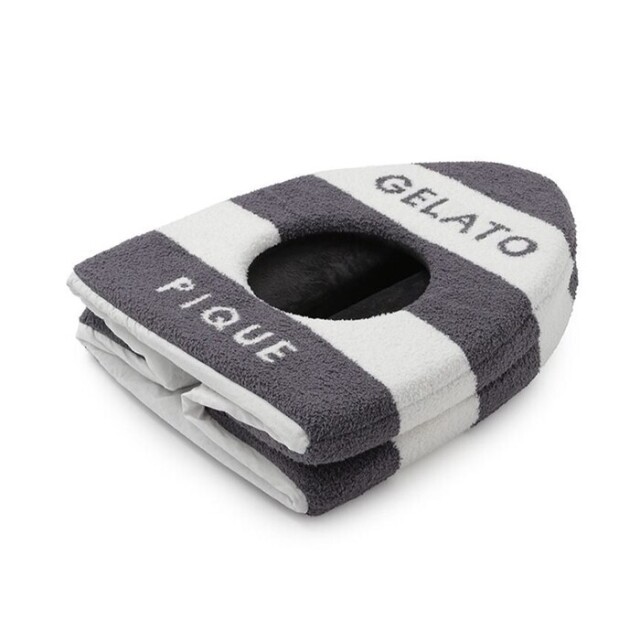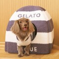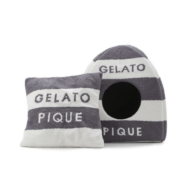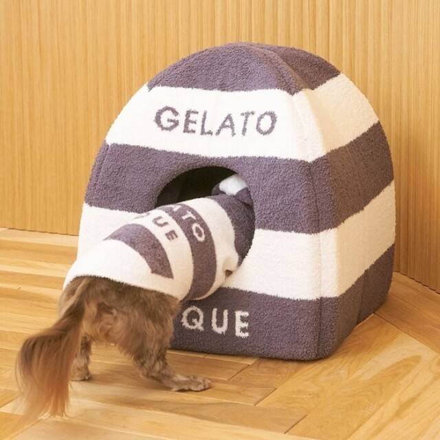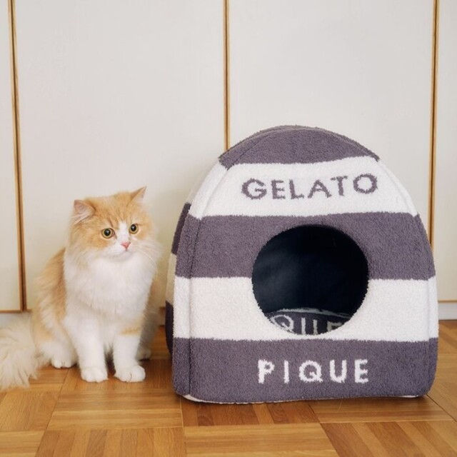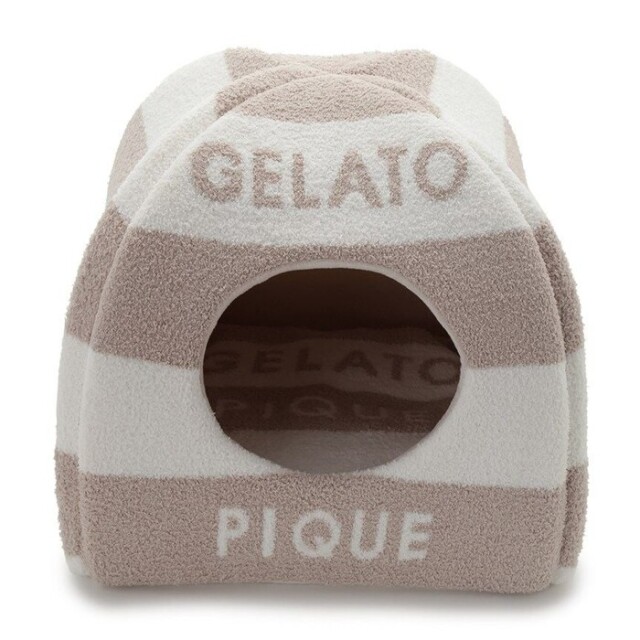 ふわふわやわらかいベビモコ素材を使ったハウスは、ピケならではのアイコニックな2色ボーダー柄にブランドロゴ入り。もぐるのが大好きなネコちゃんや小さなワンちゃんにおすすめです。