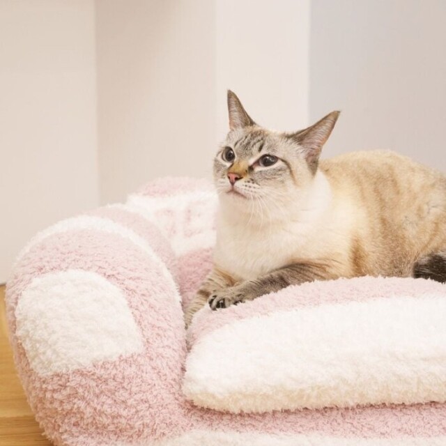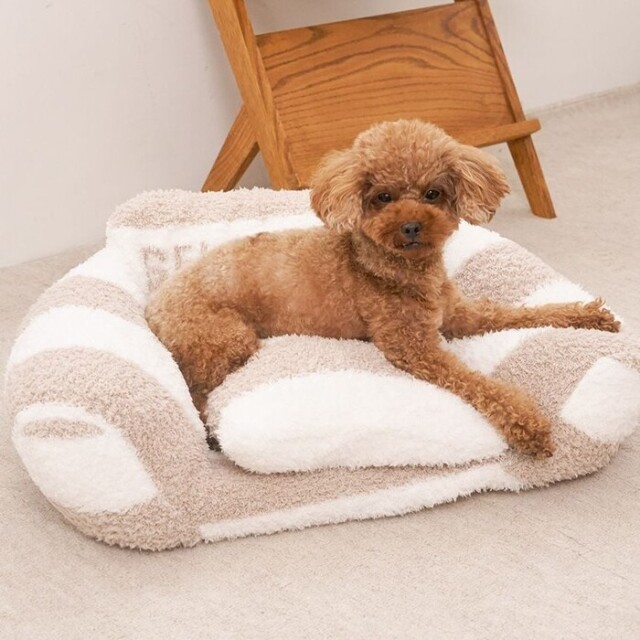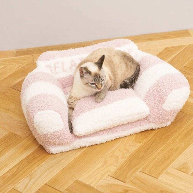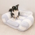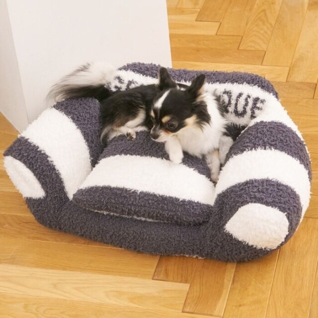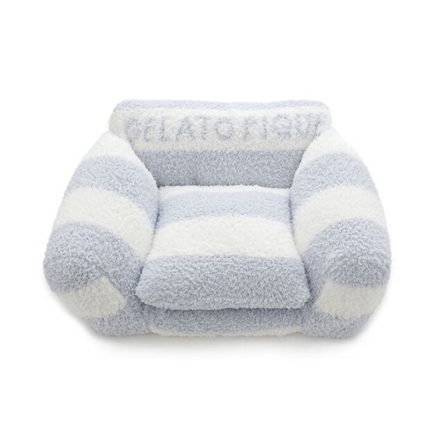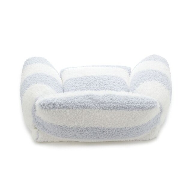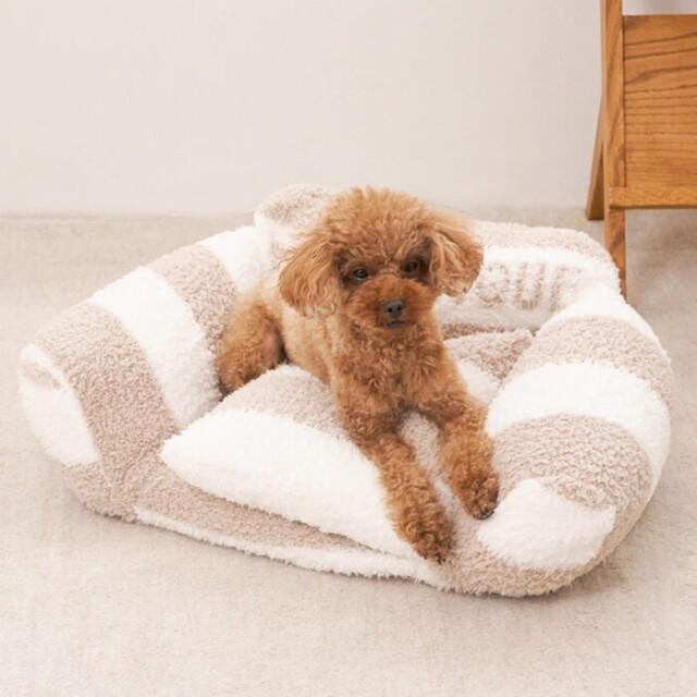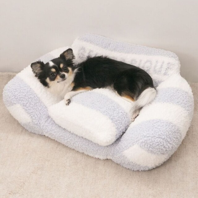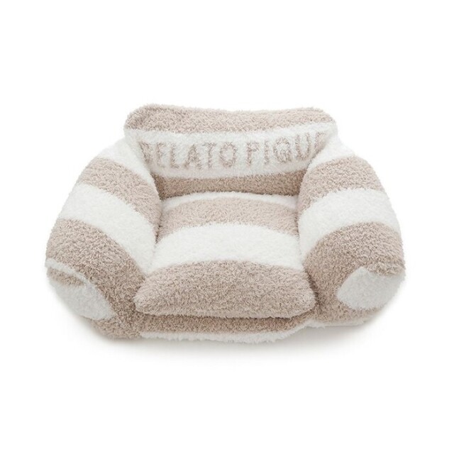 定番ふわもこ素材‘ジェラート’を使用した大好評のボーダー柄ベッドに、コンパクトな超小型犬サイズが新登場。背もたれのロゴジャガードや、あご乗せにちょうど良い肘掛け部分の形状はそのままに、ティーカッププードルやチワワ、小さめの猫などにもちょうど良いサイズが加わりました。