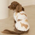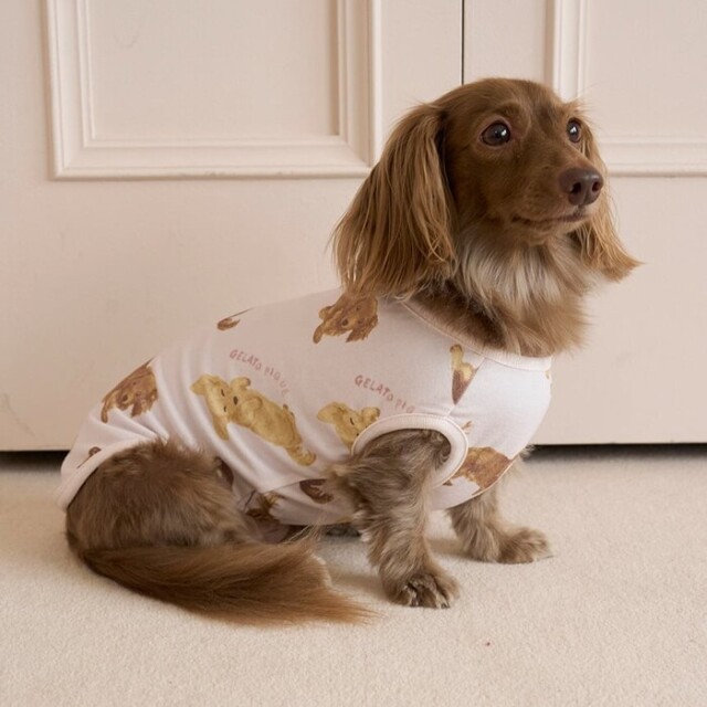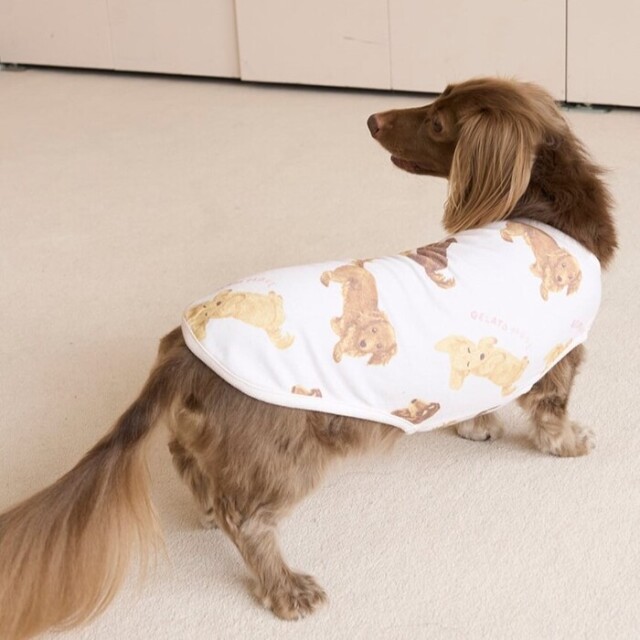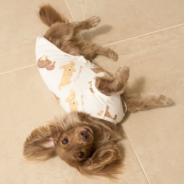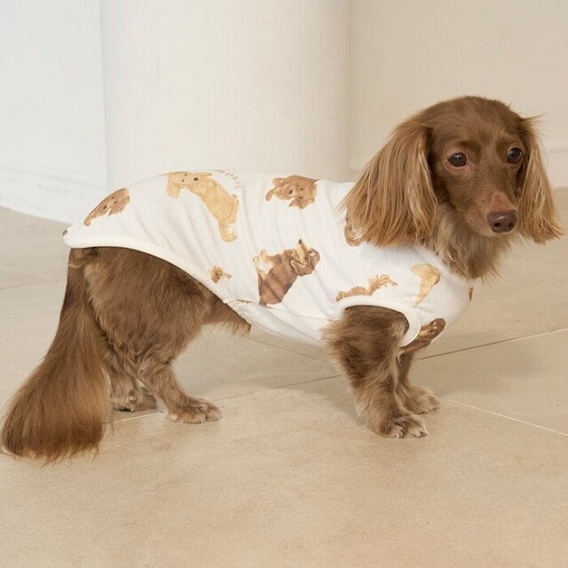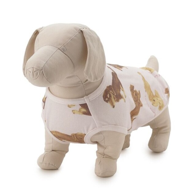 ダックスフンドオーナーの方にぜひおすすめしたい、いろんな表情のダックスを総柄プリントしたプルオーバーです。こちらを見つめている子や、ごろんと寝そべっている子など、ダックスフンドらしい仕草やポーズにこだわったキュートな絵柄を散りばめました。
