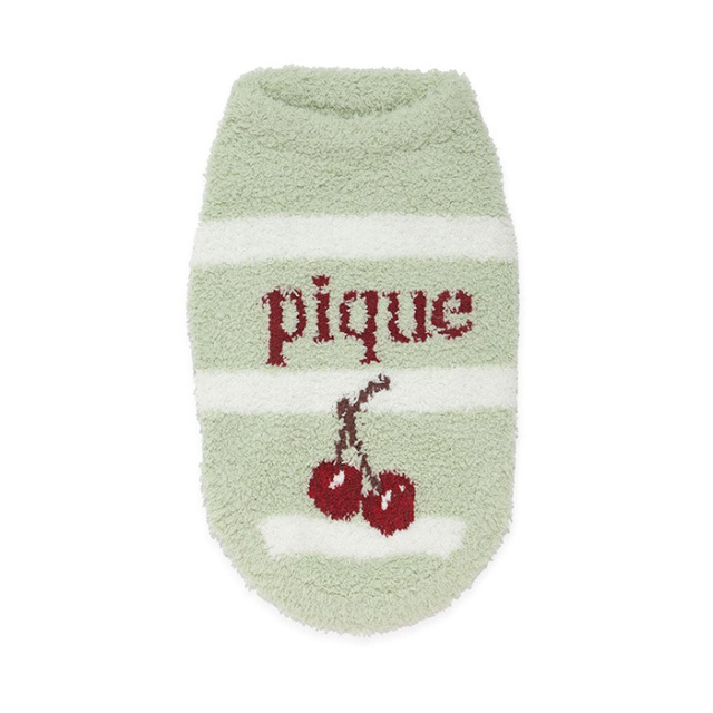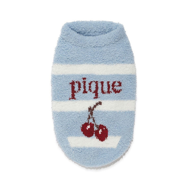 ボーダー柄に大人っぽい色合いのチェリーをあしらった、’ベビモコ’素材のもっちりとしたニットウェアです。秋らしいカラーリングに、チェリーとロゴのジャガードが映えるデザイン。