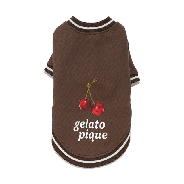 大人っぽい色合いのチェリーとロゴをプリントしたプルオーバー。首元と袖口、裾にラインを入れたカジュアルなテイストが、今っぽさを感じさせるデザインです。