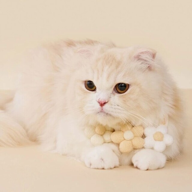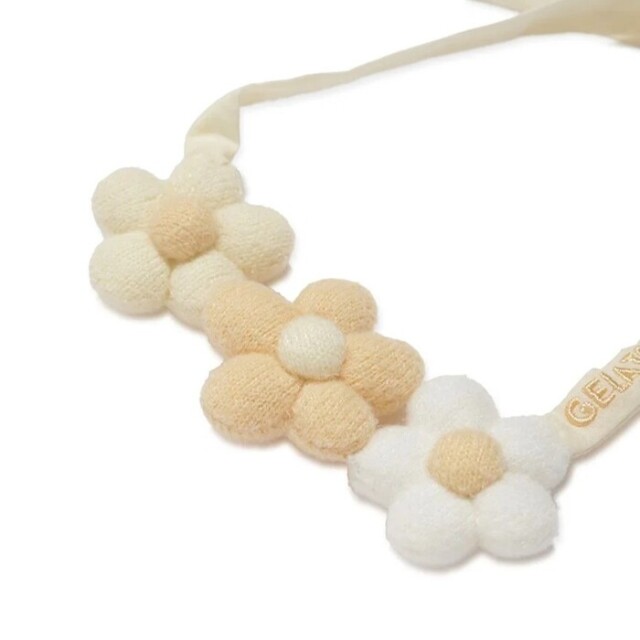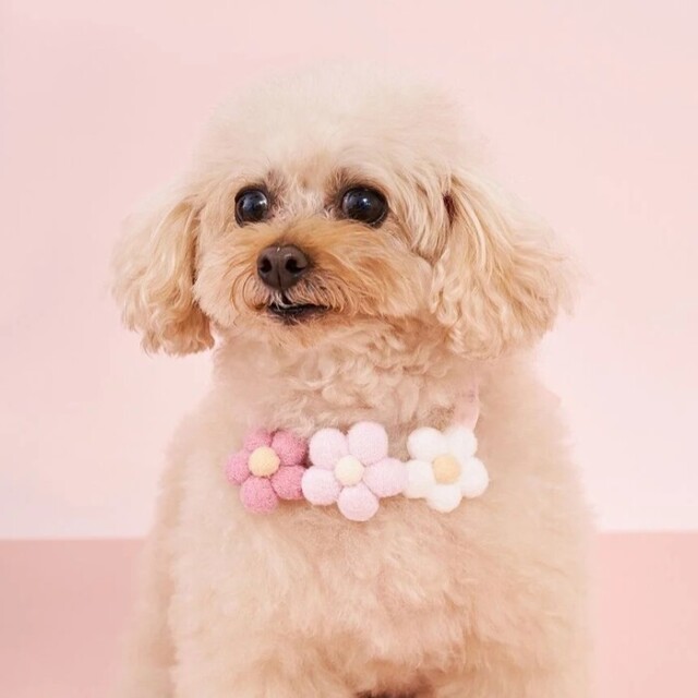 猫ちゃんや小型犬にちょうど良いサイズ感で仕上げた、毎年人気のチョーカーにキュートなお花モチーフが新登場。もちもちとした肌触りの’スムーズィー’を使用し、リボン結びなのでサイズ調整しながら付けられます。