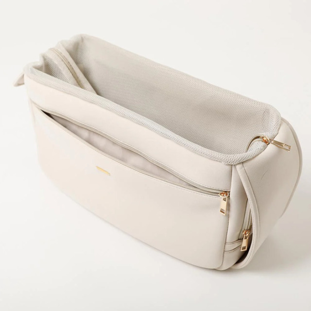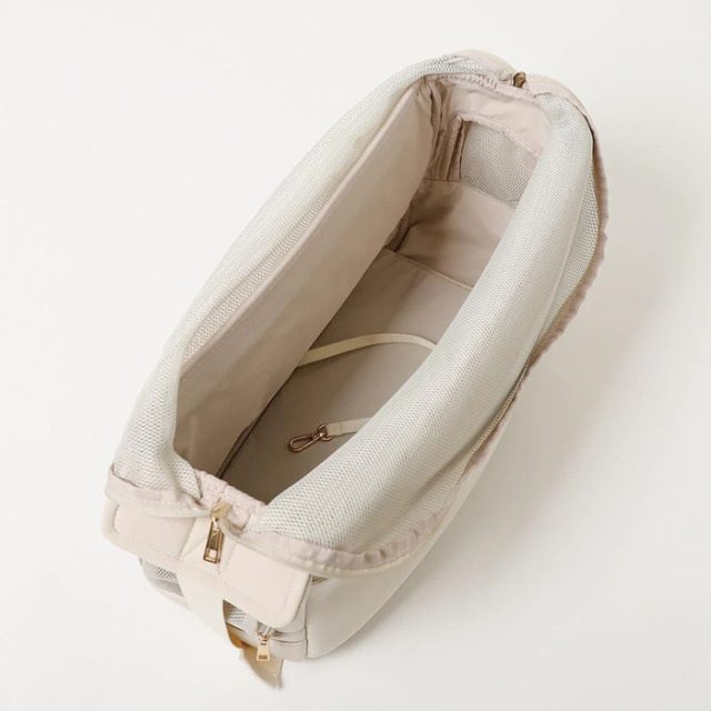 バッグ口はダブルファスナー仕様で大きく開閉できるため、愛犬ちゃんの出し入れがスムーズに◎