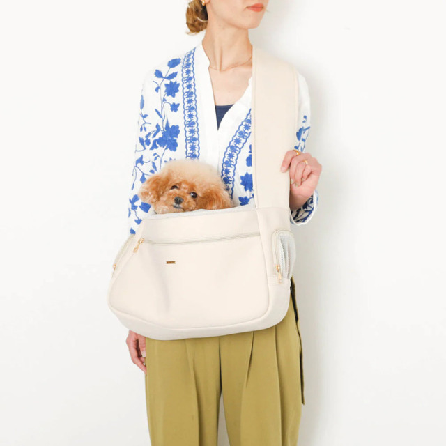 両サイドにはファスナー小窓が付いており、愛犬ちゃんが顔を出してお外を見ながらお散歩ができます。
