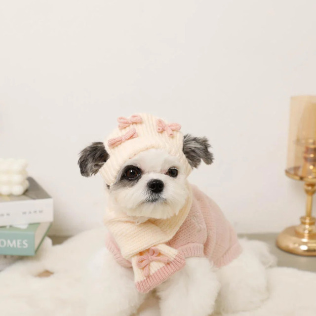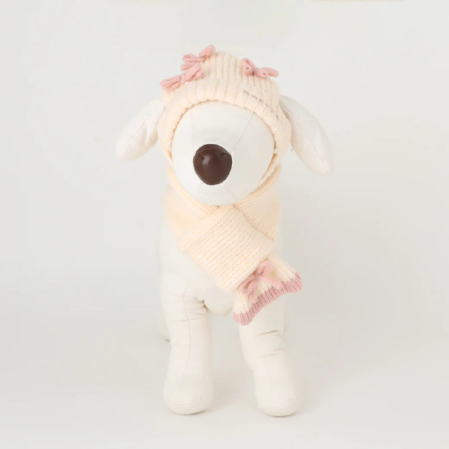 可愛らしいリボンモチーフが付いたマフラーの登場です。