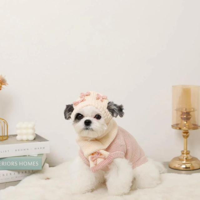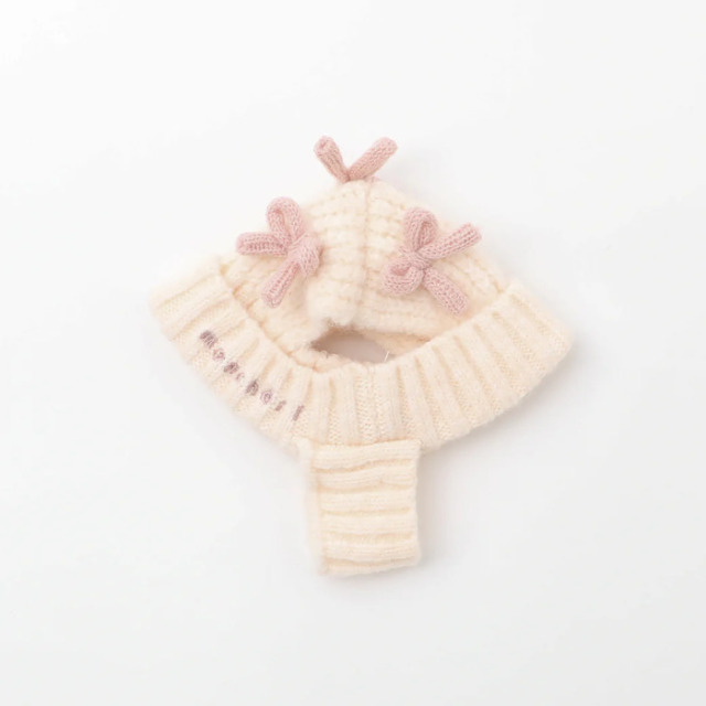 顎にニットループが付いているため頭の小さいわんちゃんでも脱げにくくになっております。