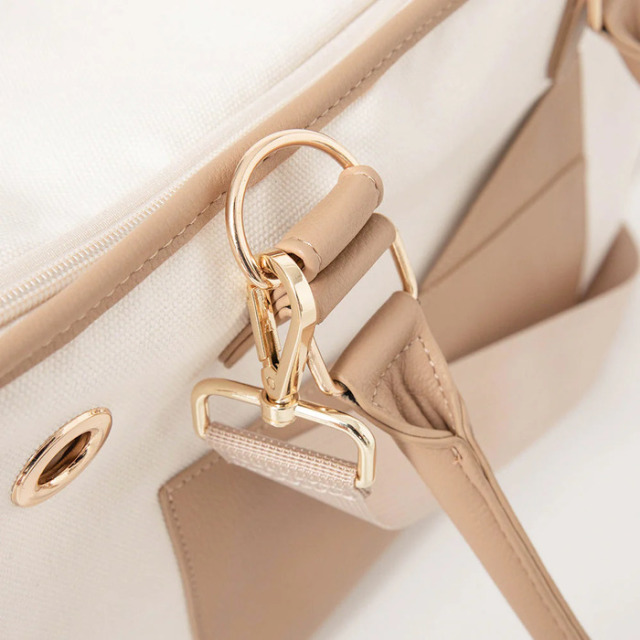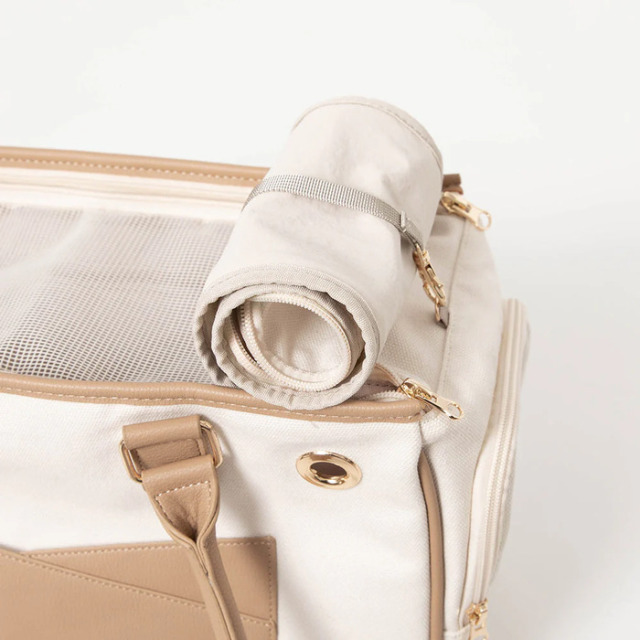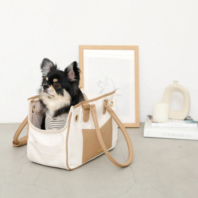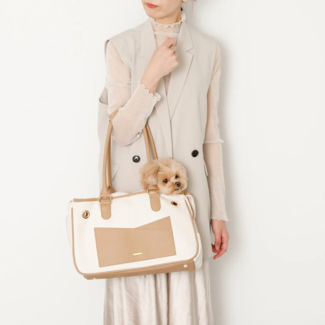 ベージュとアイボリーの優しいカラーリングのきれい目おしゃれペットバッグの登場です。