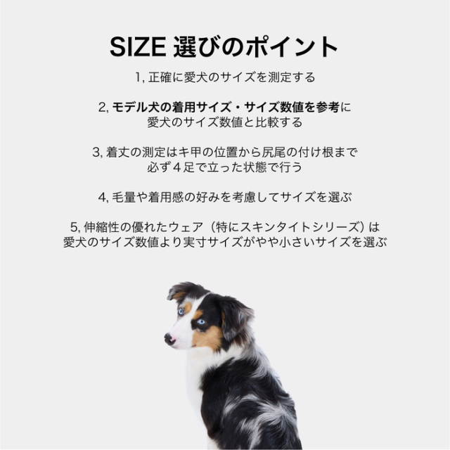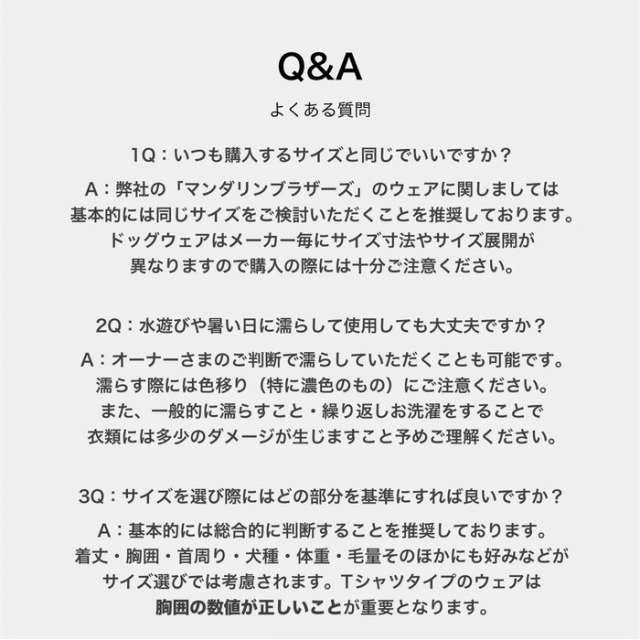| サイズ | 着丈(cm) | 胸囲(cm) | 首周(cm) |