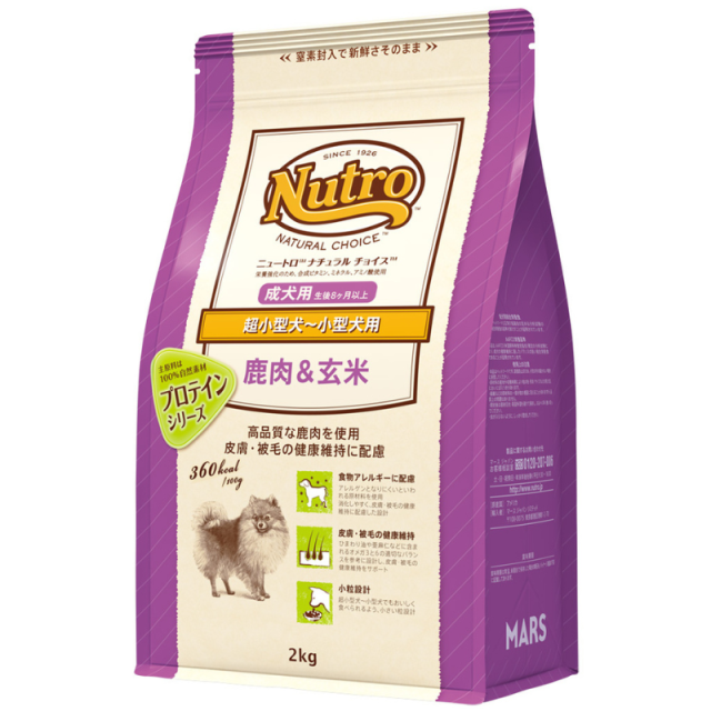 鹿肉は、低脂質*でタンパク質を豊富に含む良質な自然素材です。プロテイン シリーズの鹿肉&玄米製品は、鹿肉の自然素材としてのおいしさをお届けするとともに、一般的なドッグフードに使われることが少なくアレルゲンとなりにくいため、食物アレルギーに配慮することができます。