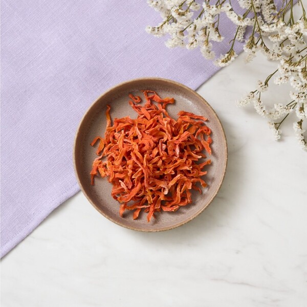 お湯で約3〜5分戻すか、乾燥野菜がつかる程度の水を入れてレンジでチンしていただき、野菜を柔らかくもどしてからドライフードや缶詰などと一緒に与えるおかずとしてご使用ください。