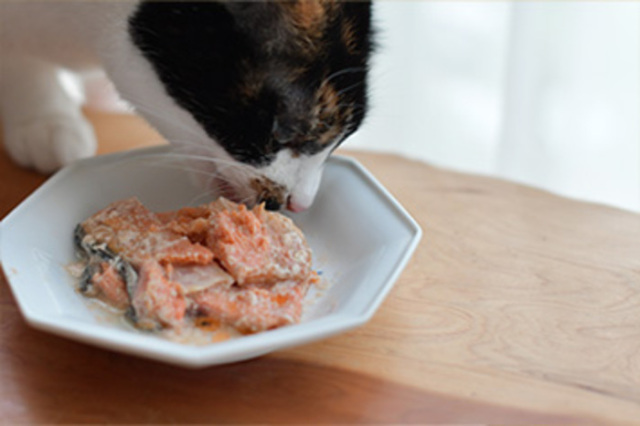 猫:体重3キロ位まで1/3缶、体重5キロ位まで1/2缶、体重7キロ位まで1缶
