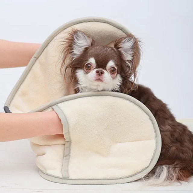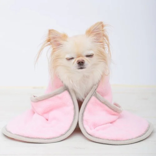 ふわふわのマイクロファイバー生地が、被毛についた水分をしっかり吸収します。