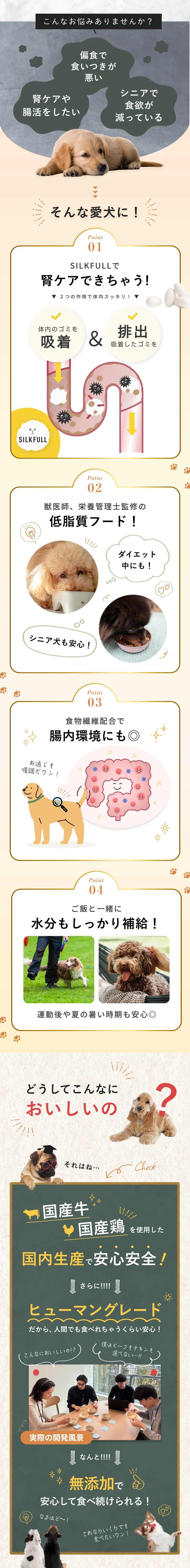 ○シルクと食物線配合で腸内の健康に配慮