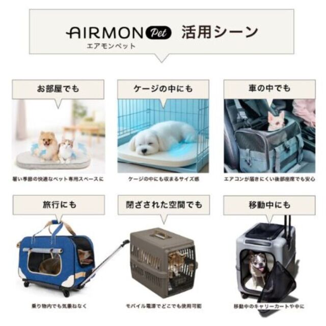 USBモバイルバッテリーに対応し、屋外の散歩カートや車内、室内など場所を選ばず使用可能です。