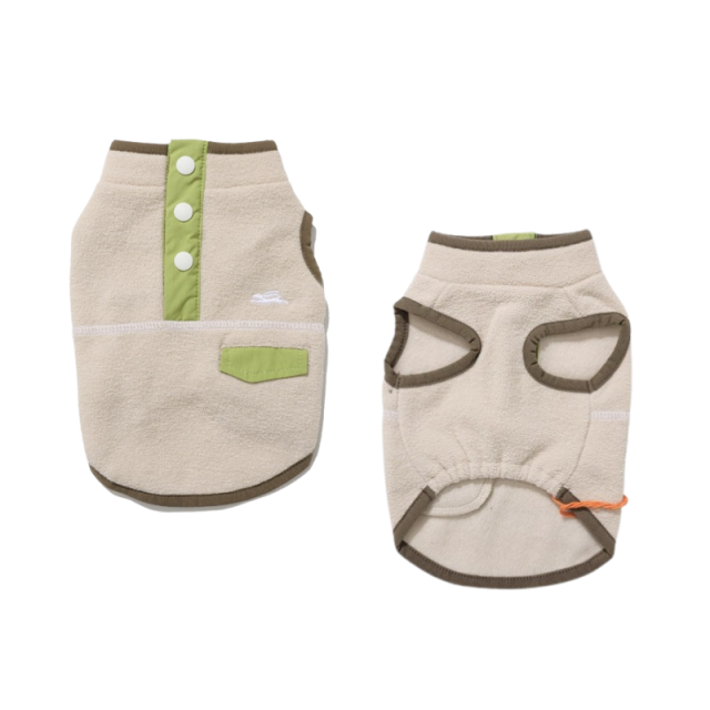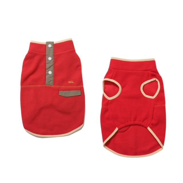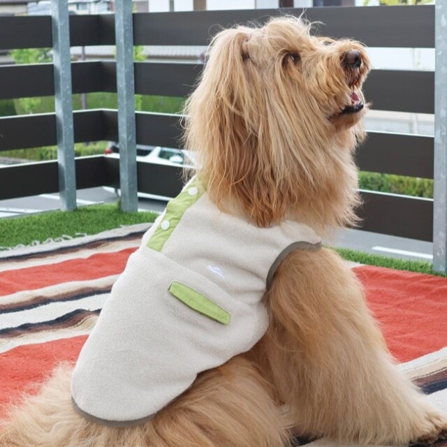 スナップボタンはフェイクになっており、面ファスナーで開閉できるのでワンちゃんに負担をかけず、楽に着脱が可能です。