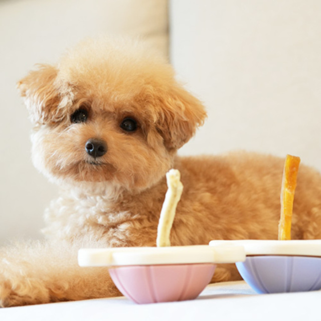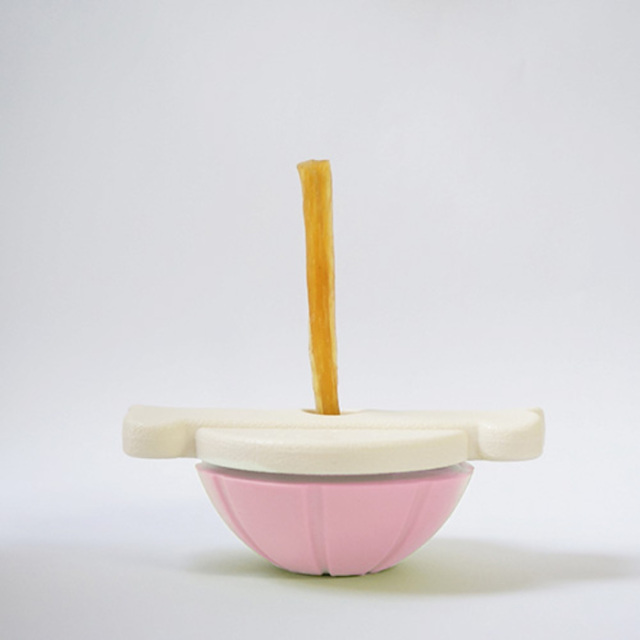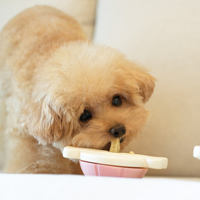 おやつをしっかり固定することで誤飲と早食いの不安を減らし、安心しておやつを与えることができます。