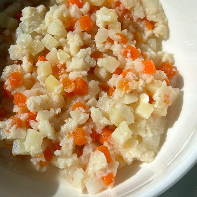【原材料】たら、じゃがいも、にんじん、鮭、なたね油、シルクフィブロイン