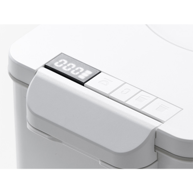 蓋に内蔵された電子計量器は、ワンタッチで0表示や計量ができます。