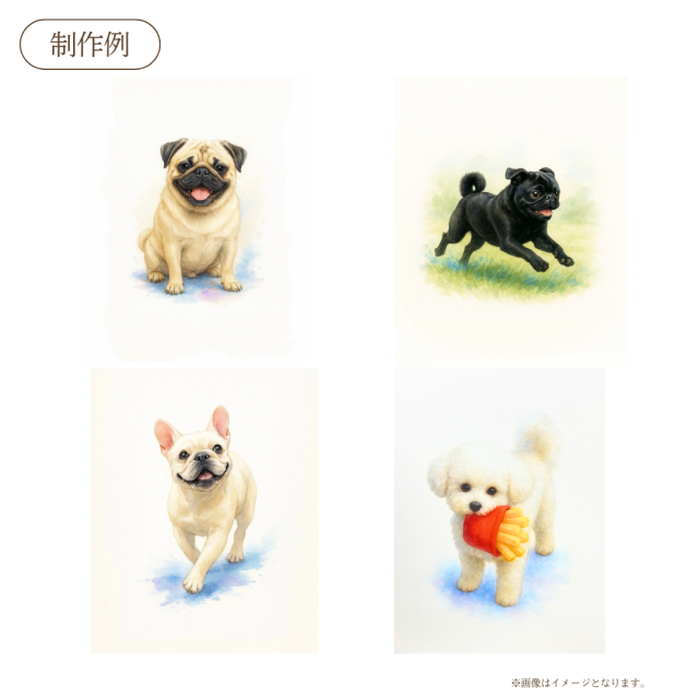 お写真といただいた情報から、アーティストが「その子らしさ」を引き出す構図・タッチ・色合いをご提案し、丁寧に描き上げますので、ご安心ください。