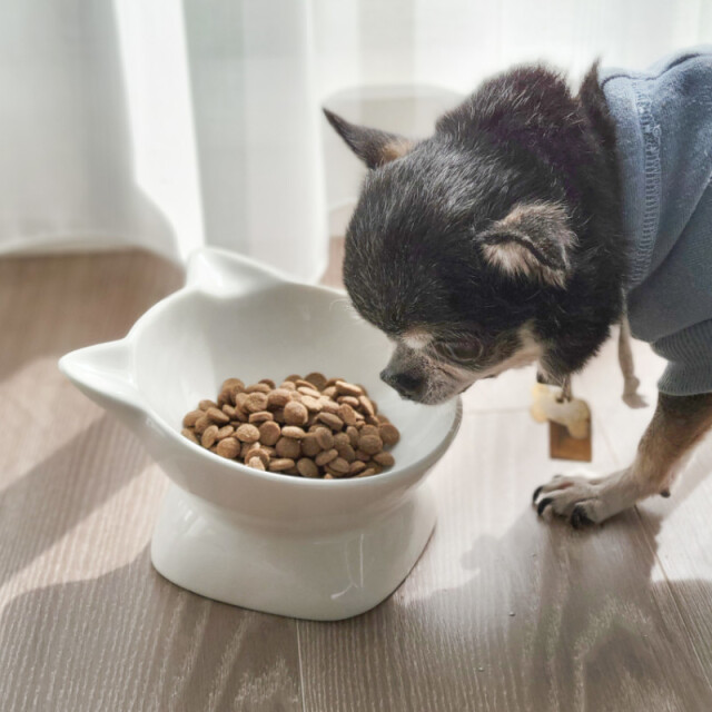 高さがあるので首に負担をかけずにおいしくご飯が食べられるフードボウルです。