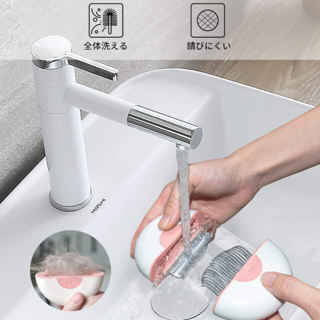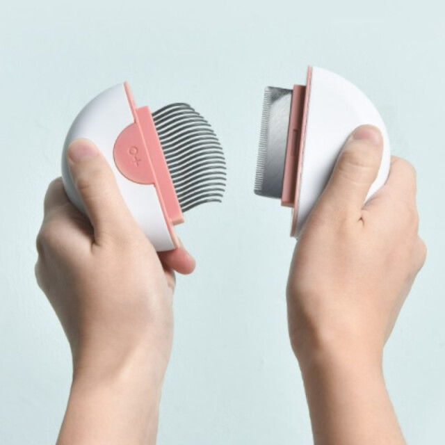 毛を梳きながらマッサージができる柔らかいコームと抜け毛を取り除く硬いコームがセットになった1台。