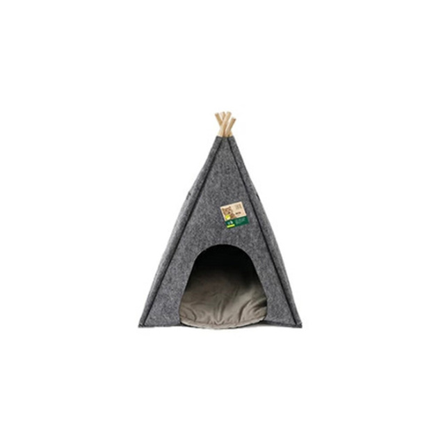 棒を差し込んでいくだけの簡単組立て。安定感のあるティピテントにはなめらかな肌触りのクッションマット付き!