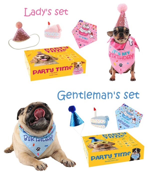 小型犬から大型犬までOKのパーティーグッズセットです。