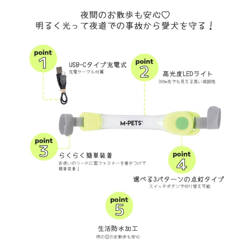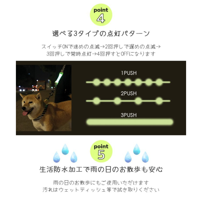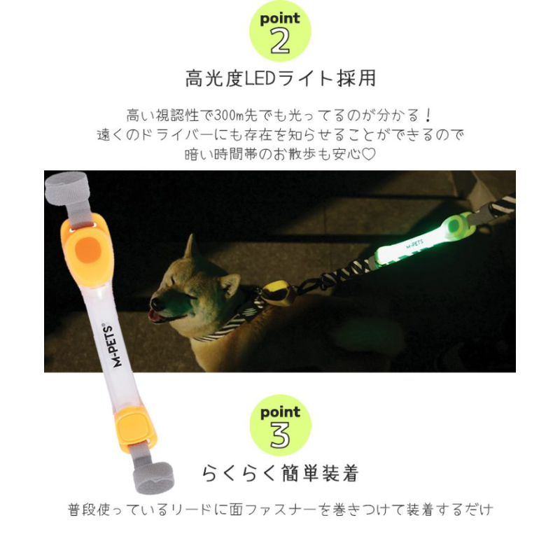早朝・夜間など暗い時間帯のお散歩も安心!