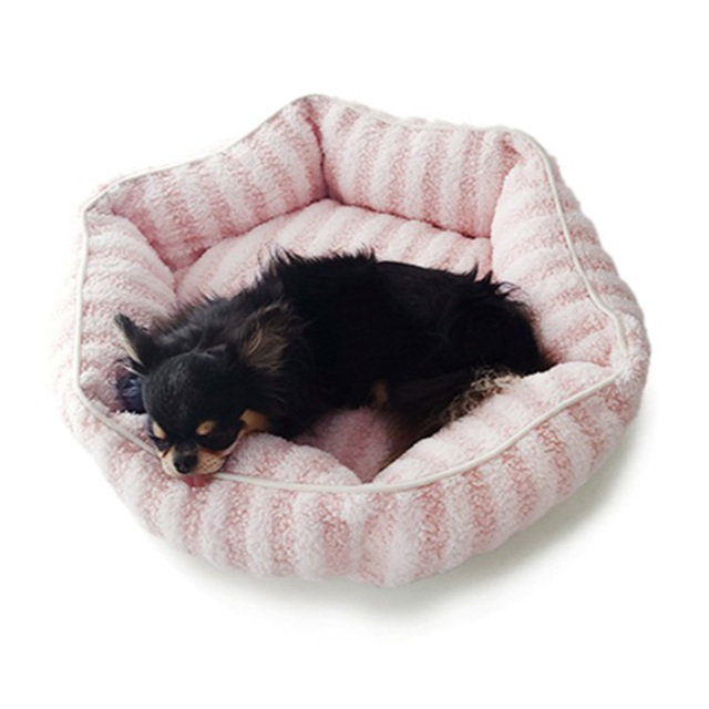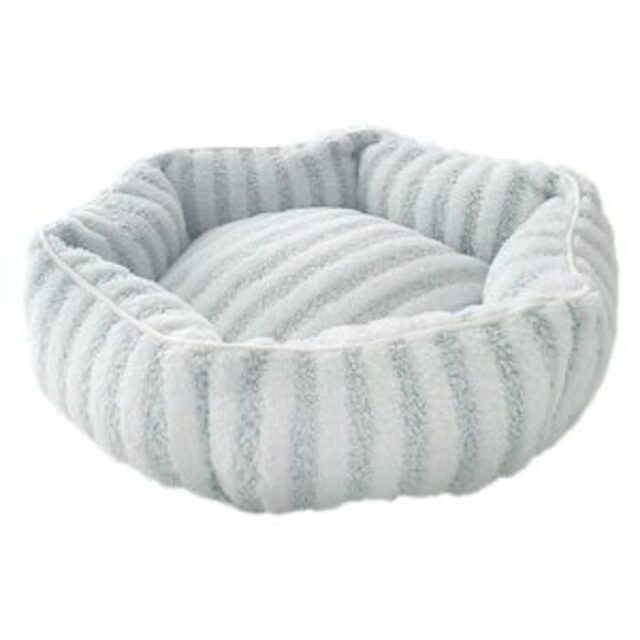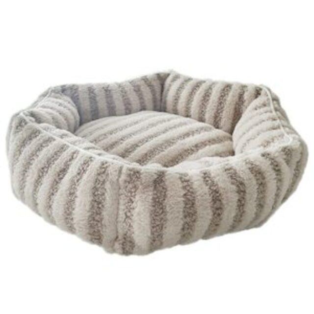 毛足短めのファーとくりくりでかわいいアルパカボアのキュートなストライプ生地を使用したデザイン性の高いおしゃれなベッドです☆