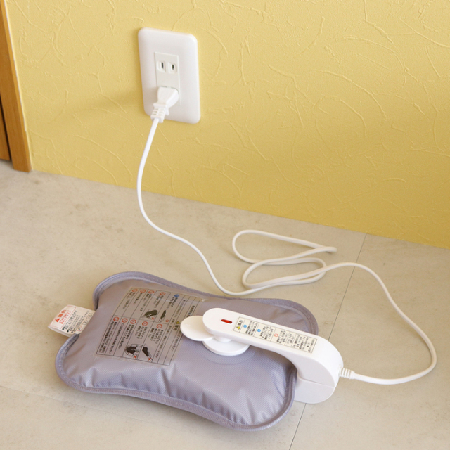 お湯の入れ替え不要で電源コードにさすだけの蓄熱式ゆたんぽです。