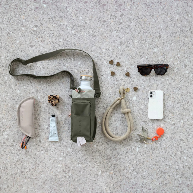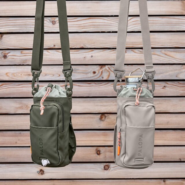 水のボトルとおやつを一つにまとめて持ち運べる、多機能ショルダーバッグです 。
