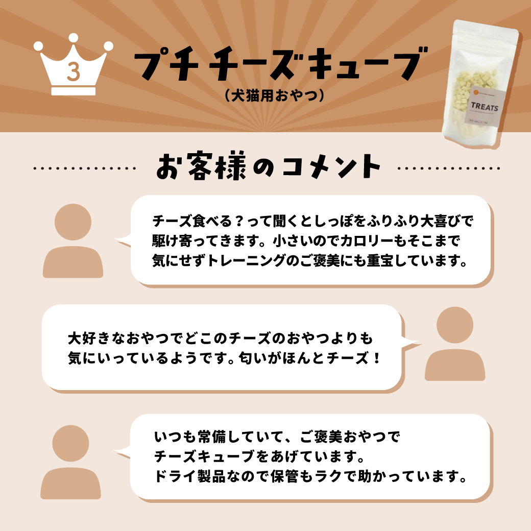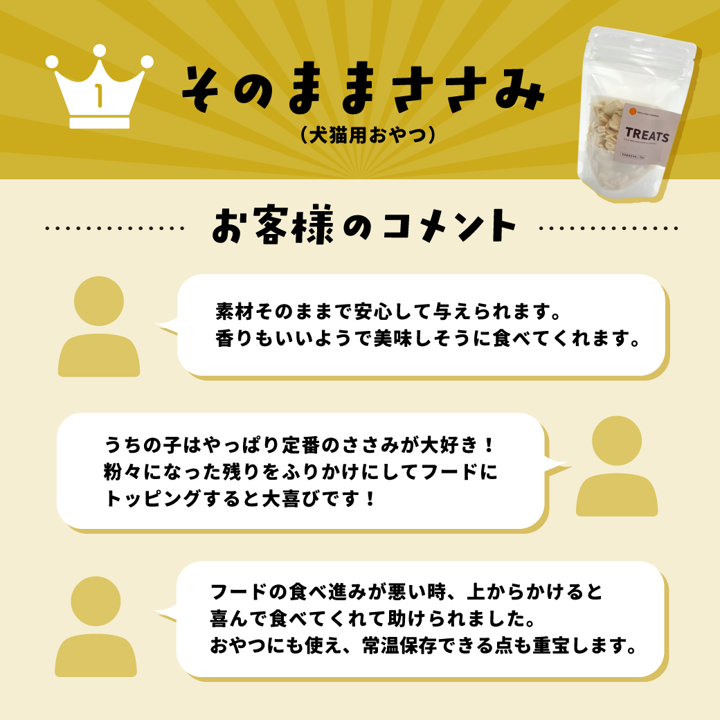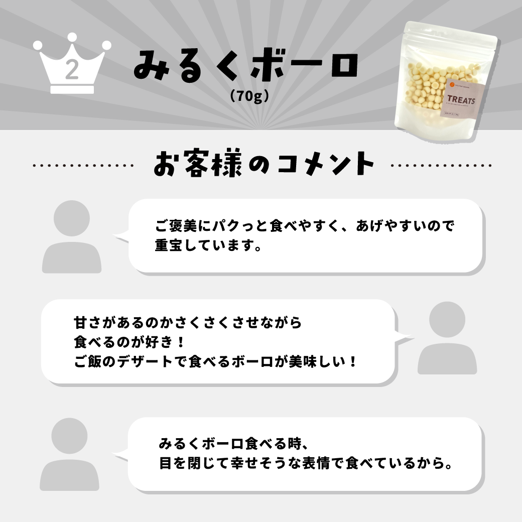 おやつ総選挙2025【結果発表】 いつも当サイトをご利用いただき、誠にありがとうございます。 2025年12月31日(水)まで開催しておりました おやつ総選挙2025の投票結果について発表いたします♪ たくさんの投票ありがとうございました! 🏆結果発表🏆 そのままささみはこちら > みるくボーロはこちら > プチ チーズキューブはこちら > 全体での1位は「そのままささみ」でしたが、 ワンちゃんでは、みるくボーロが、 ネコちゃんでは、そのままささみが1位でした✨ なお、プレゼントに当選された【10名さま】には、 おやつの詰め合わせをお送りさせていただきました🎁 次回の開催もお楽しみに🐶🐱 特設ページ